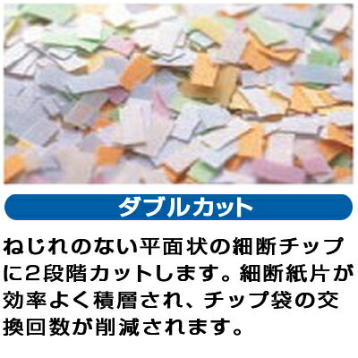 ■ダブルカット細断で細断紙片の減容を実現■ねじれのない平面状の細断チップにすることで、細断紙片が効率よく積層され、チップ袋の交換回数が削減されます。